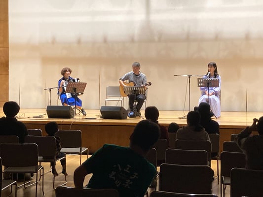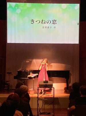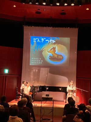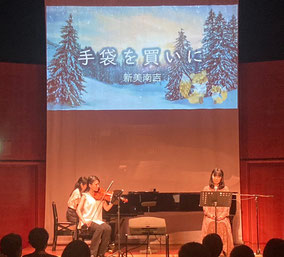 「ごんぎつね」「スーホの白い馬」「きつねの窓」の朗読にヴァイオリンとピアノのBGMを入れ、後半はヴァイオリン・ピアノ・ギターのミニコンサートを楽しんで頂きました。