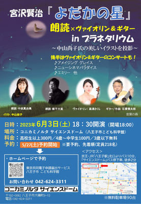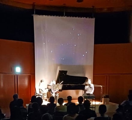 また、プラネタリウムでのコンサートの、宮澤賢治「よだかの星」の朗読&音楽のコラボは日常を忘れて贅沢な時間を過ごしていただきました。
