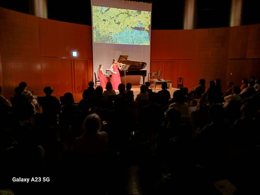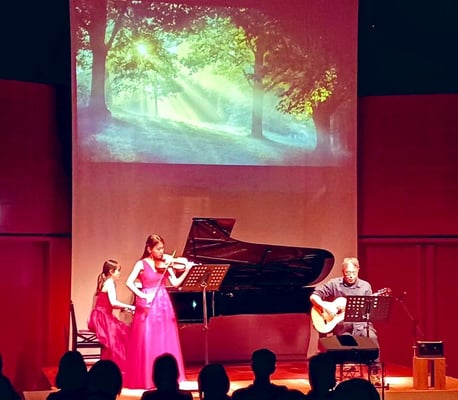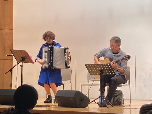 ヴァイオリン&ギターの生演奏付きの朗読です。後半はミニコンサートでした。